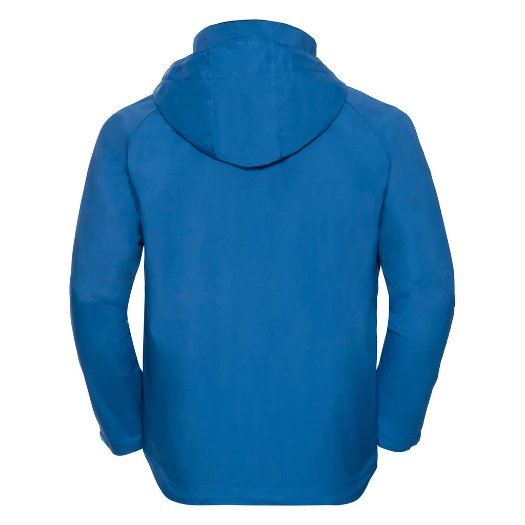 Weight: 190gsm; Material: Outer: 100% Nylon (taslan) with PU coating; Inner: mesh lining; Critically taped seams, waterproof (2,000 mm), Breathable (2,000 g/m² in 24h), 3 piece hood in collar, Reverse tone-in-tone YKK zip with chin protection, Concealed wind protection border with hook-and-loop fastener, Various zipped pockets, Adjustable sleeve ends with hook-and-loop fastener, Slightly longer back piece, Hem with elastic drawcord and stoppers, Access for decoration on hem. Certificates: STANDARD 100 by OEKO-TEX®; WRAP