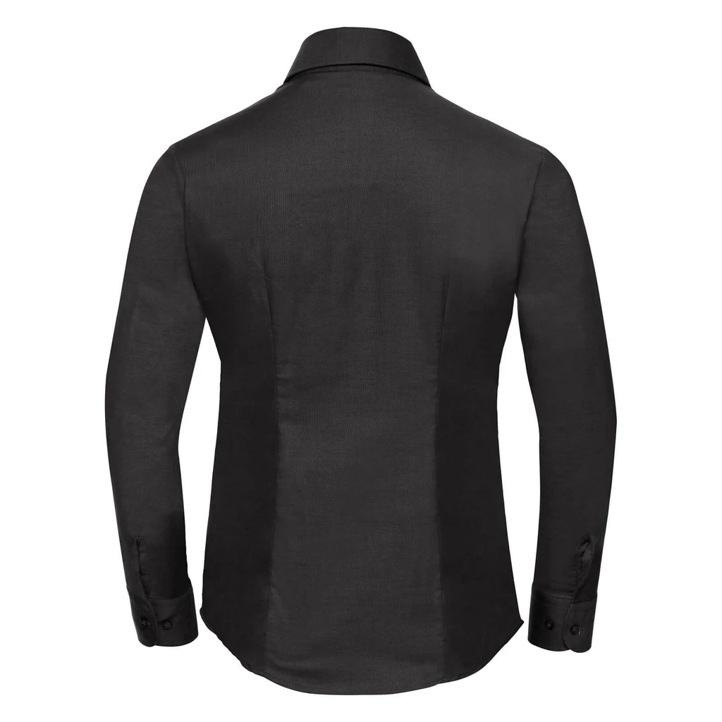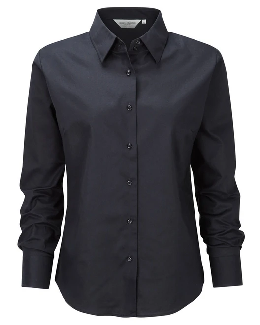 Weight: 135 g/m² (White: 130 g/m²); Material: 70% Cotton, 30% Polyester (Oxford); Ladies’ Long Sleeve Tailored Oxford Shirt; Long sleeve, 2 button collar stand with classic shaped collar, Rounded 2 button adjustable cuffs, Darts at bustline and back for tailored fit, Rounded hem, Spare buttons, Easy Care. Certificates: STANDARD 100 by OEKO-TEX®; WRAP
