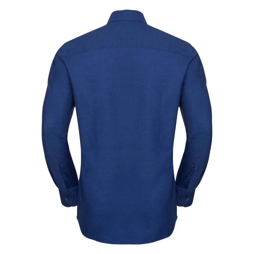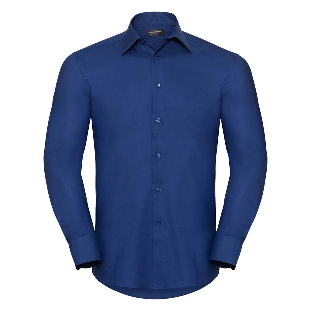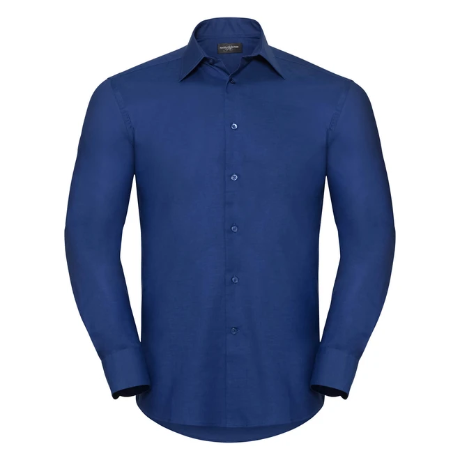 Weight: 135 gsm (White: 130 gsm); Material: 70% Cotton, 30% Polyester (Oxford); Men’s Oxford Shirt LS; Long sleeve, Stiffened semi-cutaway boned collar, Back yoke, Tonal buttons, Double turnback hem on sleeves, Stylish, rounded edge 2 button adjustable cuff (with option for cuff links), Tailored fit, Rounded hem, Spare buttons, Easy Care. Certificates: STANDARD 100 by OEKO-TEX®; WRAP
