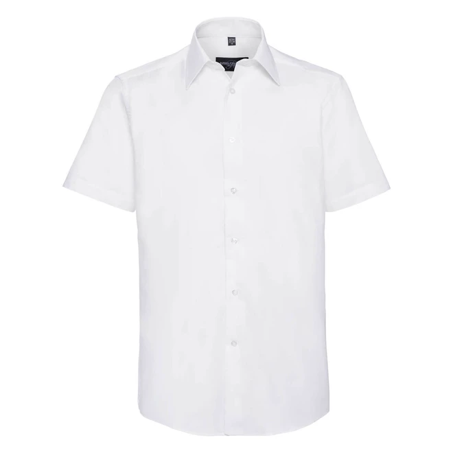 Oxford Shirt Short Sleeve; Stiffened semi-cutaway boned collar, Tonal buttons, Double turnback hem on sleeves, Tailored fit, Rounded hem, Spare buttons, Easy Care. Certificates: STANDARD 100 by OEKO-TEX®; WRAP