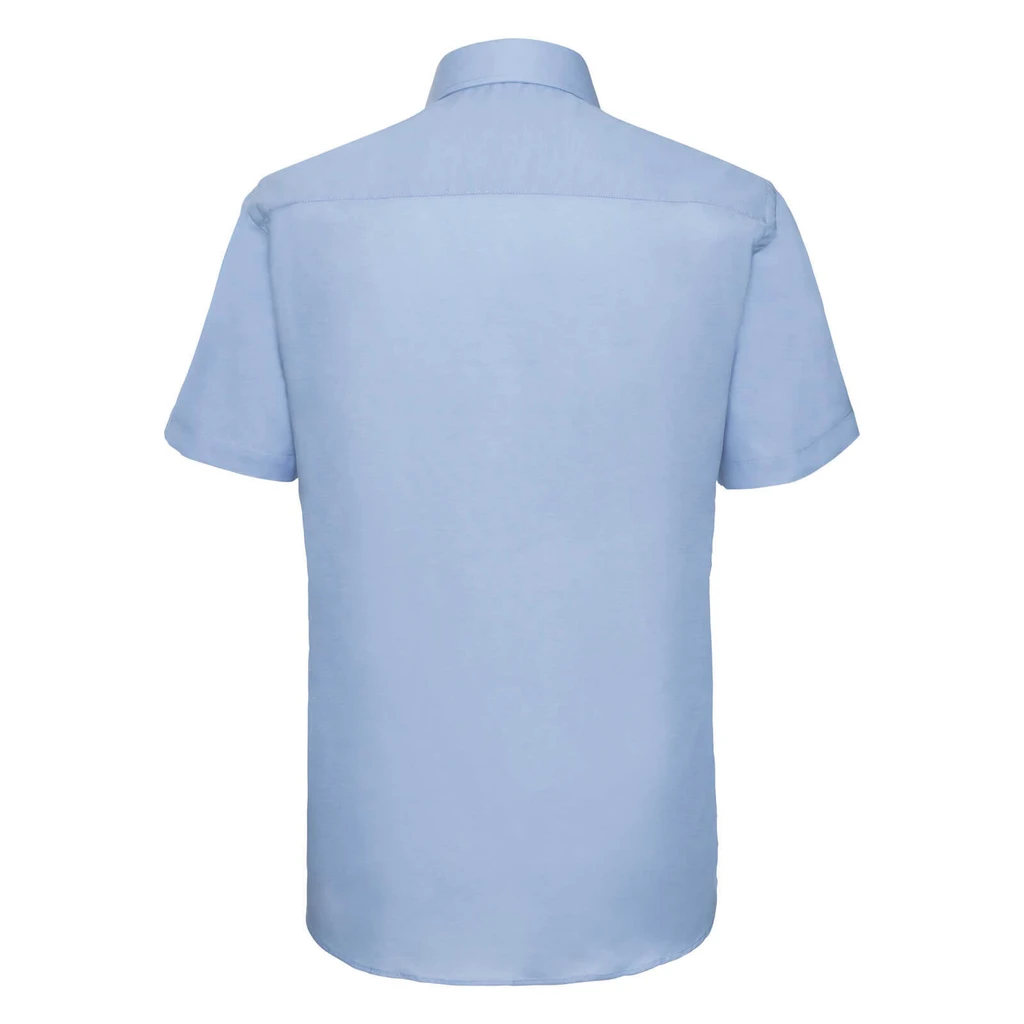 Oxford Shirt Short Sleeve; Stiffened semi-cutaway boned collar, Tonal buttons, Double turnback hem on sleeves, Tailored fit, Rounded hem, Spare buttons, Easy Care. Certificates: STANDARD 100 by OEKO-TEX®; WRAP