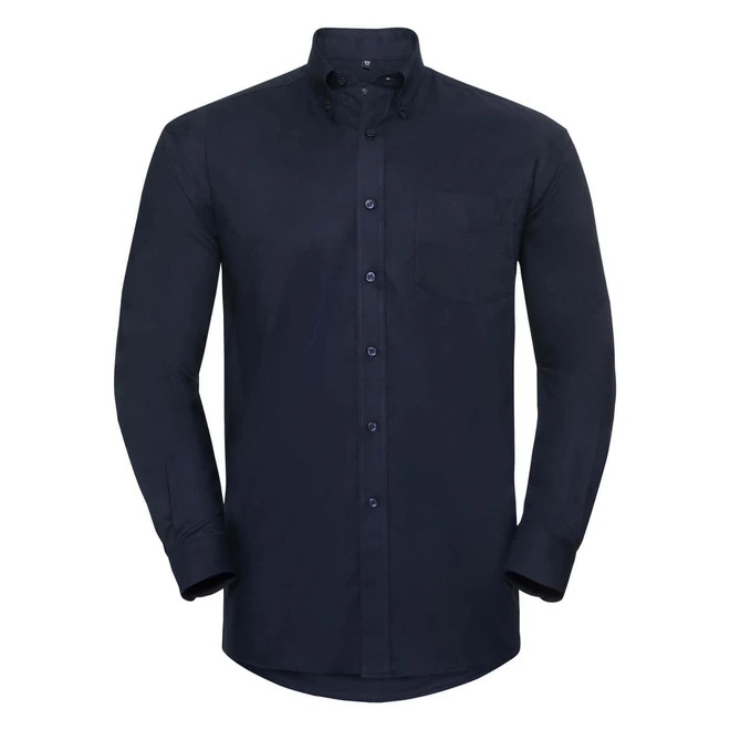 Weight: 135gsm (White: 130gsm); Material: 70% Cotton, 30% Polyester (Oxford); Oxford Shirt LS; Long sleeves, Button down collar, Back yoke with 2 side pleats, Rounded 2 button adjustable cuffs plus single button on cuff gauntlet, V-shaped pocket over left chest, Classic cut, Rounded hem, Spare buttons, Easy care. Certificates: STANDARD 100 by OEKO-TEX®; WRAP