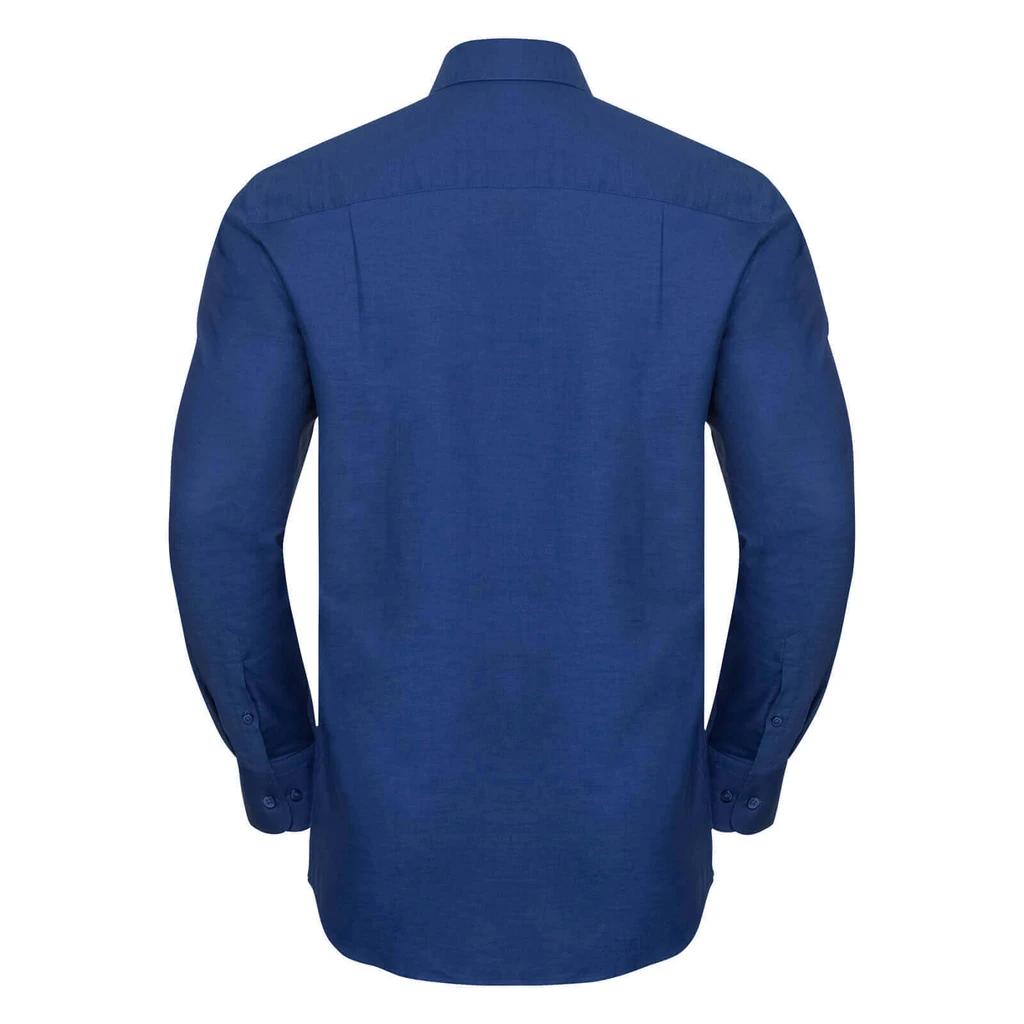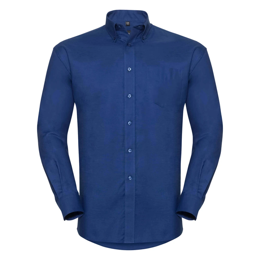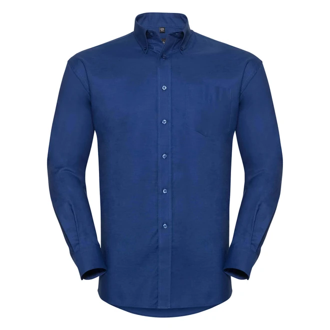 Weight: 135gsm (White: 130gsm); Material: 70% Cotton, 30% Polyester (Oxford); Oxford Shirt LS; Long sleeves, Button down collar, Back yoke with 2 side pleats, Rounded 2 button adjustable cuffs plus single button on cuff gauntlet, V-shaped pocket over left chest, Classic cut, Rounded hem, Spare buttons, Easy care. Certificates: STANDARD 100 by OEKO-TEX®; WRAP