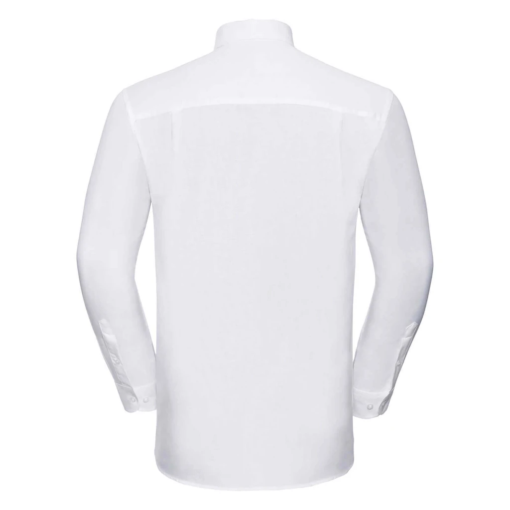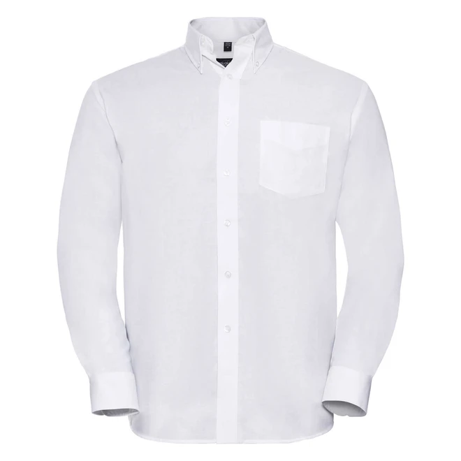 Weight: 135gsm (White: 130gsm); Material: 70% Cotton, 30% Polyester (Oxford); Oxford Shirt LS; Long sleeves, Button down collar, Back yoke with 2 side pleats, Rounded 2 button adjustable cuffs plus single button on cuff gauntlet, V-shaped pocket over left chest, Classic cut, Rounded hem, Spare buttons, Easy care. Certificates: STANDARD 100 by OEKO-TEX®; WRAP