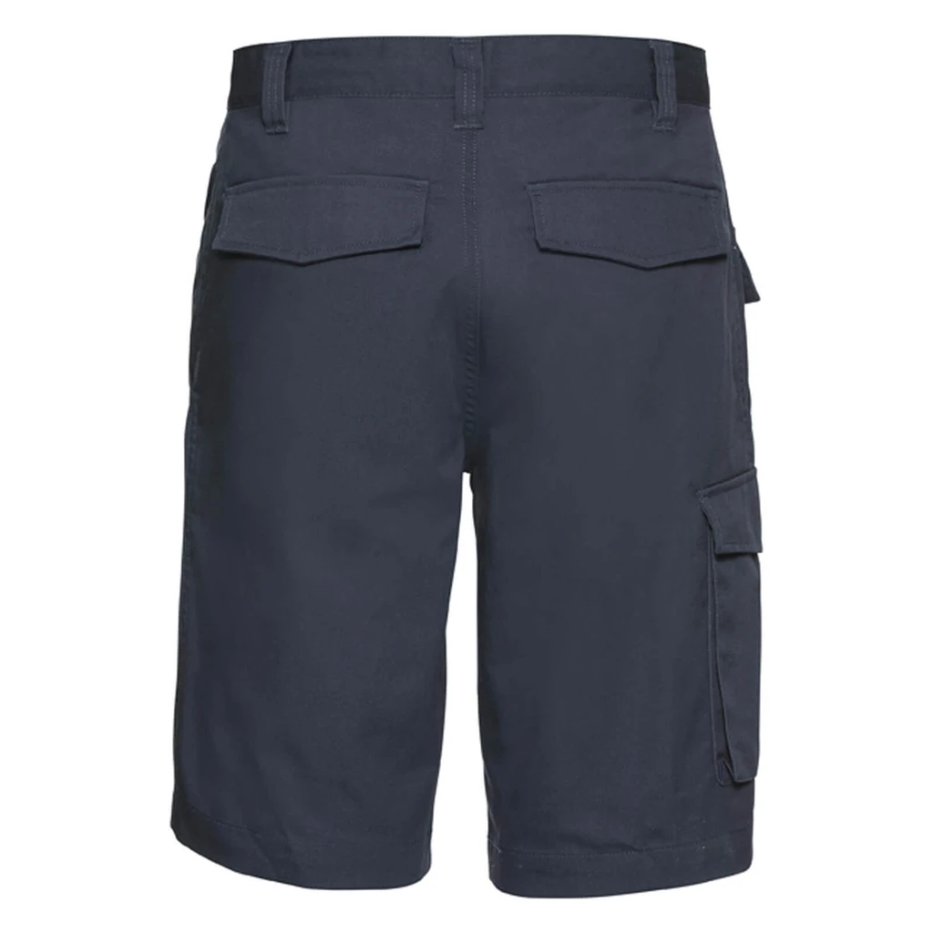 Weight: 245gsm; Material: 65% Polyester, 35% Cotton (twill); Shorts with elastic waistband for comfortable fit, Trendy design, 2 back pockets with pocket flaps, Mobile phone pocket, Cargo pocket on right leg. Certificates: STANDARD 100 by OEKO-TEX®; WRAP