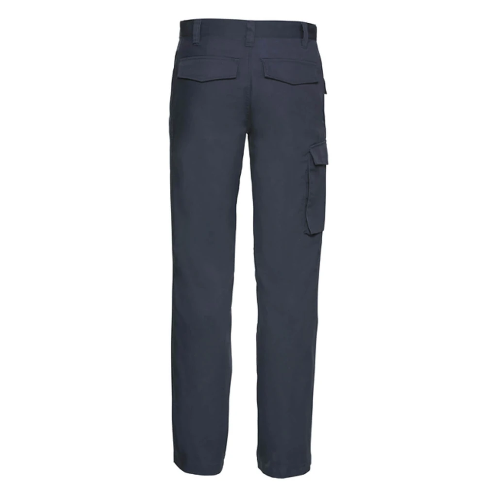 Weight: 245gsm; Material: 65% Polyester, 35% Cotton (twill); Workwear Trouser Length 34"; Elastic waistband for comfortable fit, Trendy design, 2 Back pockets with pocket flaps, Mobile phone pocket, Cargo pocket on right leg, Available in 2 lengths: R (length 32"), L (length 34 "); Certificates: STANDARD 100 by OEKO-TEX®; WRAP