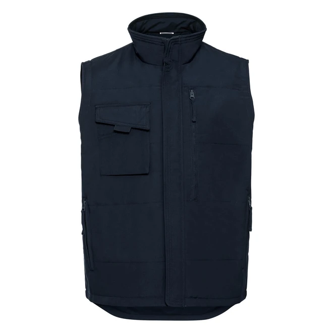 Weight: 260gsm; Material: Outer: 65% Polyester, 35% Cotton (tough canvas); Padding: 150 g/m², 100% Polyester; DuPont™ Teflon® fabric protector, Elastic trim to armholes, Full zip with stormflap, flexi notch at neck, Zipped vertical front pockets, Right hand side chest pocket with functional multi compartments, Inside pocket for DIN A4 documents, Drop Tail, reinforced hang tag, Embroidery and print access through left chest side. Certificates: STANDARD 100 by OEKO-TEX®; WRAP