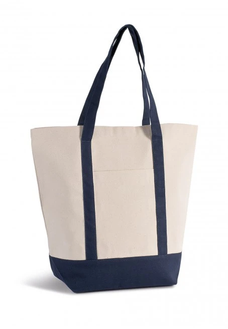 Sailor style cotton canvas tote bag 310 gsm, 55 cm handles in contrasting colour, front pocket.