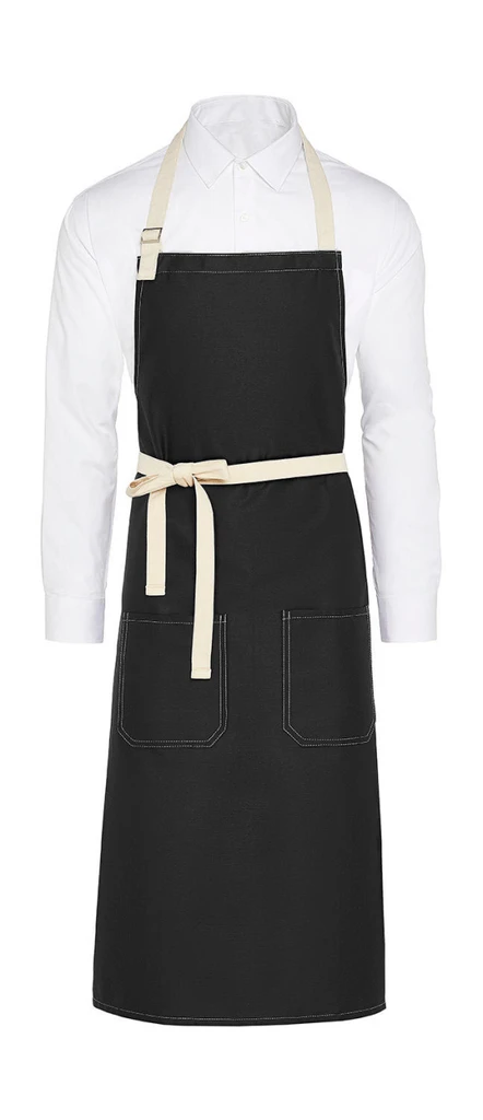 With on-trend Natural contrast ties and adjustable neckband (both in Canvas), this smart poly-cotton bib apron is available in fashionable colours. With its practical 2 separated pockets with designed cut and contrasted stitching (colour Natural), it will give you an outstanding Look. Washable at 60°, it's also colourfast and easy care, for long-lasting uses, it's perfect in all circumstances.