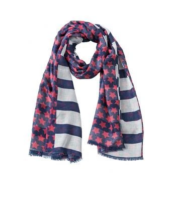 Stars and Stripes design, Soft and pleasant to wear, Rolled edges on long sides, Fine fringes