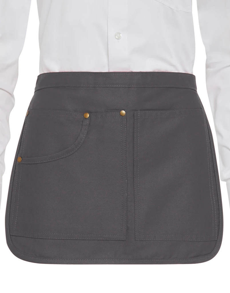 Perfect indoors or on the terrace, this practical holster apron has multiple designed pockets with Antique brass rivets, it also closes with an antique brass buckle around your waist. The antique brass carabiner adds functionality and security as well as a modern look. Available in 3 core colours, it's a MUST HAVE for any hard-working team. Depending on its use, it can be worn upfront or on the sides around your waist.