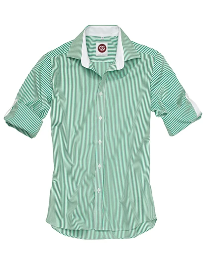 Stripes are always a theme in the fashion world, because they can be combined and varied in so many different ways. This is also true for business clothing. A striped blouse or shirt can, depending on the styling and colour, appear modern as well as casual or classic. Labico are further enhanced with a fresh touch through its white inner collar. The shirts' sleeves can be rolled up and fixed with a white strap. 60° C washable, easy-care, colourfast, industrial laundering, finishing allowed.
