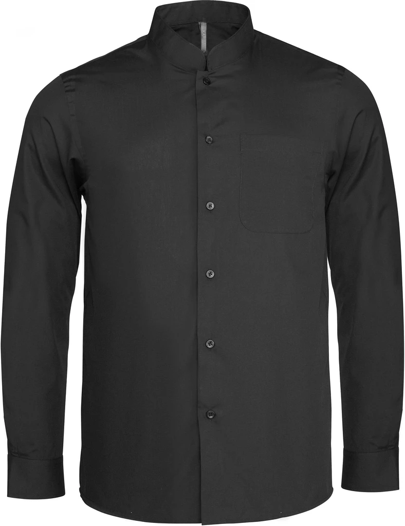 65% polyester / 35% cotton popelin. Easy care fabric. Mandarin collar. Self coloured buttons. Left chest pocket. Adjustable cuffs with leg capuchin. 2 spare buttons.