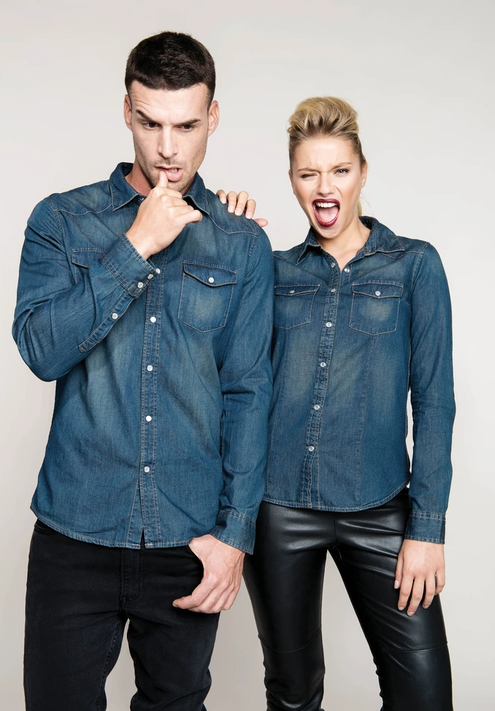 100% cotton. Enzyme washed shirt. Fittted style. Fancy stud buttons. 2 studded chest pockets with flap. Front and back yokes. Studded cuffs.