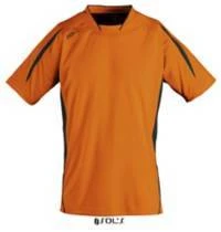 QUALITY: 100% interlock polyester; Fancy collar with contrasted piping, raglan sleeves, large breathable mesh fabric, inserts in the sides and in the sleeves, ensuring perspiration control, longer rounded back hem, reinforced trims, embroidered contrasting logo, suitable for sublimation
