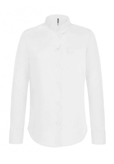 65% polyester / 35% cotton popelin. Easy care fabric. Mandarin collar. Self coloured buttons. Left breast pocket. Adjustable cuffs with non tearable sleeve placket. 1 spare button. Shaped hem.