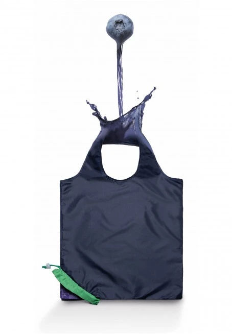 Shopper in polyester 190T, PU backing, foldable into a fruit shape pouch.
