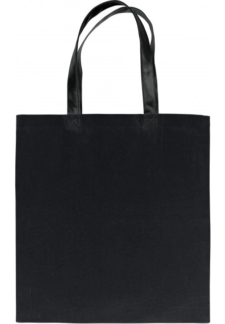 Cotton canvas shopping bag 220 gsm, with PU imitation leather handles.