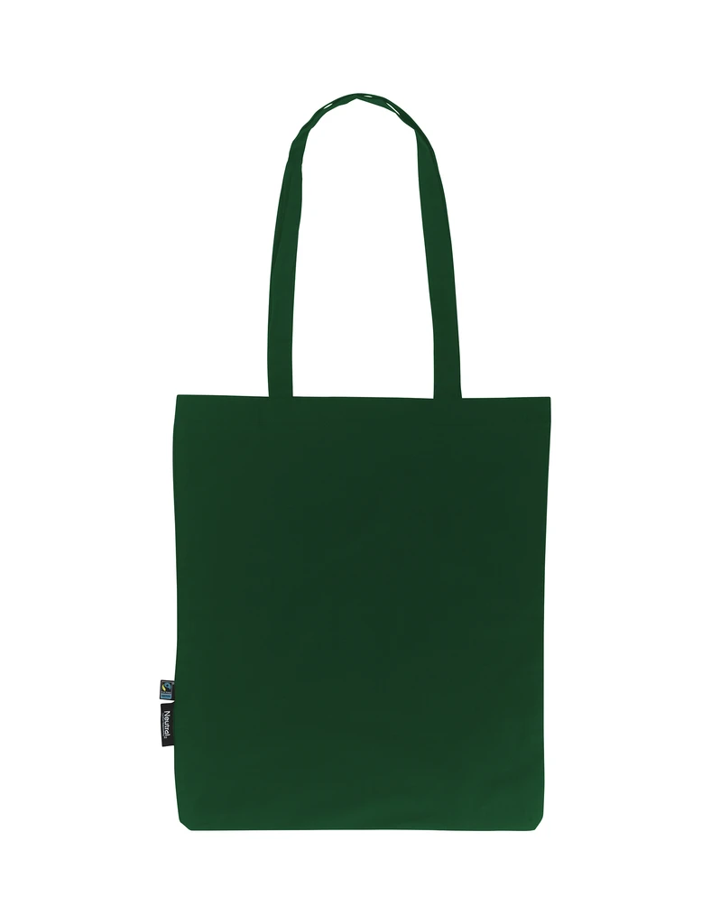 Material: 100% Organic Fairtrade Cotton, canvas Weave; Weight: 120gsm; Lightweight Canvas Weave, Long handles. Reinforced at stress points. Sizes: 38 x 42 cm. Neutral® & Fairtrade flaglabels at side; Certificates: OEKO-TEX® STANDARD 100, 100% CERTIFIED ORGANIC COTTON, FAIR WEAR, EU ECOLABEL, SA8000, NEUTRAL® RESPONSIBILITY