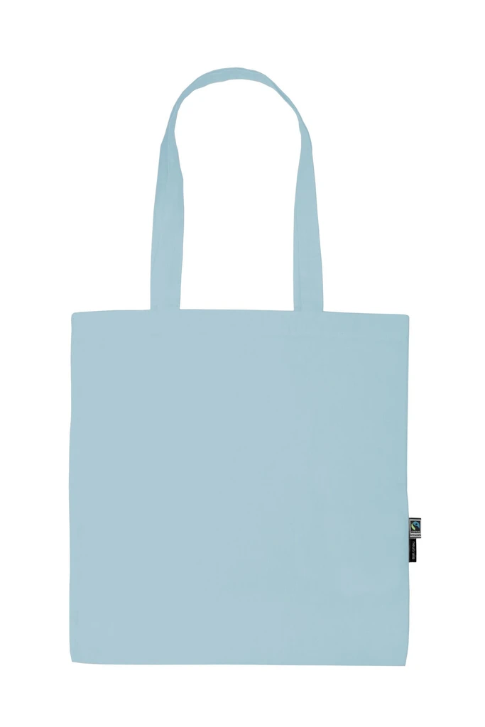 Material: 100% Organic Fairtrade Cotton, canvas Weave; Weight: 120gsm; Lightweight Canvas Weave, Long handles. Reinforced at stress points. Sizes: 38 x 42 cm. Neutral® & Fairtrade flaglabels at side; Certificates: OEKO-TEX® STANDARD 100, 100% CERTIFIED ORGANIC COTTON, FAIR WEAR, EU ECOLABEL, SA8000, NEUTRAL® RESPONSIBILITY