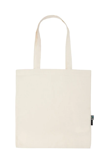 Material: 100% Organic Fairtrade Cotton, canvas Weave; Weight: 120gsm; Lightweight Canvas Weave, Long handles. Reinforced at stress points. Sizes: 38 x 42 cm. Neutral® & Fairtrade flaglabels at side; Certificates: OEKO-TEX® STANDARD 100, 100% CERTIFIED ORGANIC COTTON, FAIR WEAR, EU ECOLABEL, SA8000, NEUTRAL® RESPONSIBILITY
