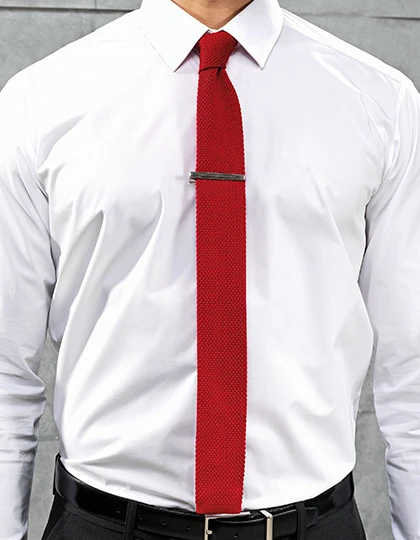 A super trendy tie suitable for work and play! Boasting an extra slim width of just 5cm with a squared off blade finished with a fine-knit stitching. This tie is knitted together with two coloured yarns for a slight contrast effect.