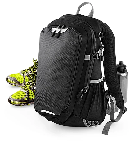 TearAway label for ease of rebranding, detachable waterproof rain cover, laptop compatible up to 15.6 inches, padded adjustable shoulder straps, adjustable waist and chest straps, ergonomic breathable padded mesh back panel, hydration bladder compatible, trekking pole attachment points, compression straps, elasticated mesh side pockets, zippered side pocket, zippered front pocket, internal mesh pocket, reflective accents, back light attachment loop, grab handle, key hook; Dimensions: 31 x 48 x 20 cm; Capacity: 20 litres