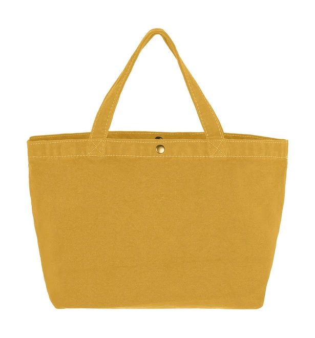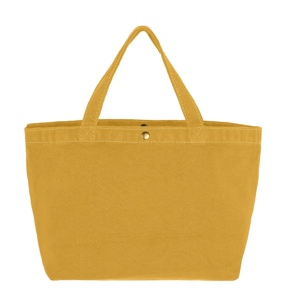 Looking for Vintage Chic ? This garment dyed canvas small shopper is your answer! Available in a range of on-trend colours, each bag is UNIQUE thanks to the dye technique. Featuring an antique brass press-stud closure, a handy inside pocket and contrast stitching for added style, it's both practical and fashionable.