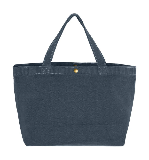 Looking for Vintage Chic ? This garment dyed canvas small shopper is your answer! Available in a range of on-trend colours, each bag is UNIQUE thanks to the dye technique. Featuring an antique brass press-stud closure, a handy inside pocket and contrast stitching for added style, it's both practical and fashionable.