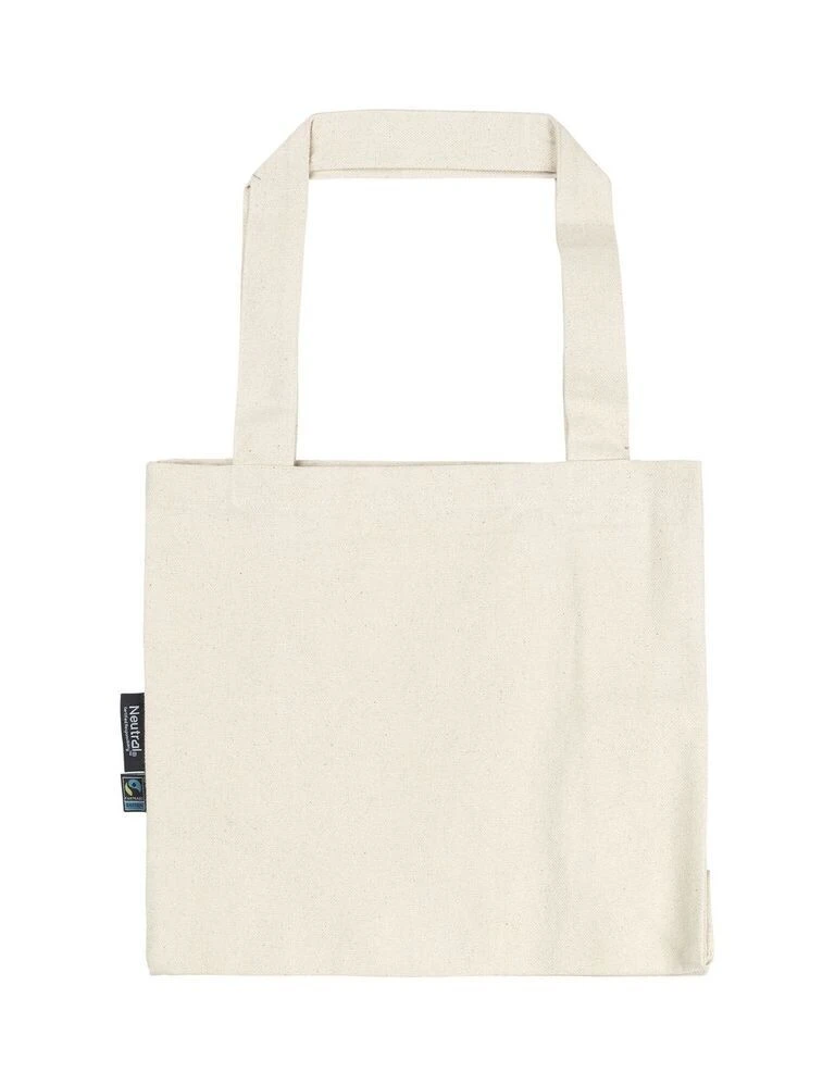 Material: 100% Organic Fairtrade Cotton, heavy Panama Weave; Weight: 300gsm; Extra Heavy Panama Weave. Long handles (50 cm). Reinforced at stress points. Bottom & side gusset. Sizes: 28 x 26 cm; Neutral® & Fairtrade flaglabels at side; Certificates: OEKO-TEX® STANDARD 100, 100% CERTIFIED ORGANIC COTTON, FAIR WEAR, EU ECOLABEL, SA8000, NEUTRAL® RESPONSIBILITY