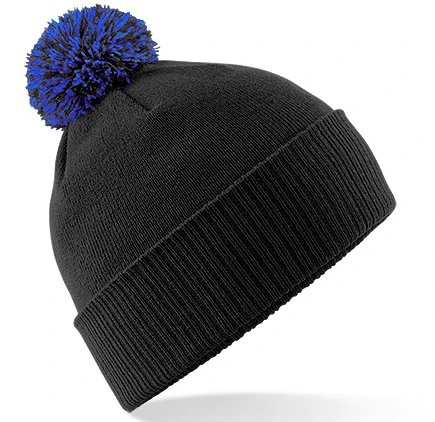 Dual style - Cuffed or slouch, double layer knit, ribbed cuff, two-tone pom pom