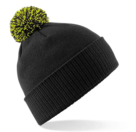 Dual style - Cuffed or slouch, double layer knit, ribbed cuff, two-tone pom pom