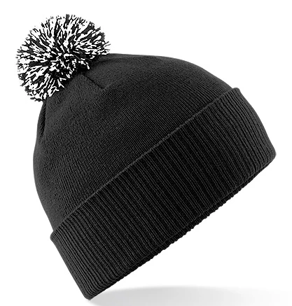 Dual style - Cuffed or slouch, double layer knit, ribbed cuff, two-tone pom pom