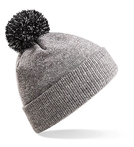 Dual style - Cuffed or slouch, double layer knit, ribbed cuff, two-tone pom pom