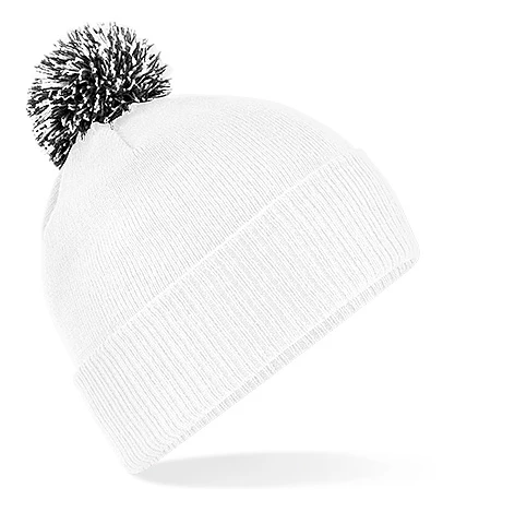 Dual style - Cuffed or slouch, double layer knit, ribbed cuff, two-tone pom pom
