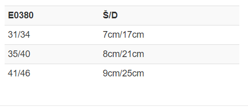 | Velikost extra | 31/34, 35/40, 41/46 |