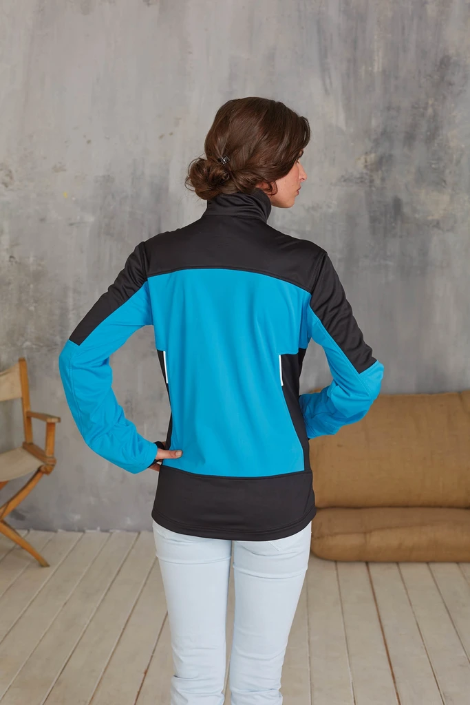 100% polyester throughout. 3 layer knitted softshell fabric. Breathable up to 5000 g/m2/24h and water resistant up to 5000 mm. Fitted style with storm cuffs and thumbholes. 2 front zipped pockets. 1 zipped sleeve pocket. Full front zip. Polytricot lined collar. Reflective detail on panels. Invisible zip access at inner chest for decoration.