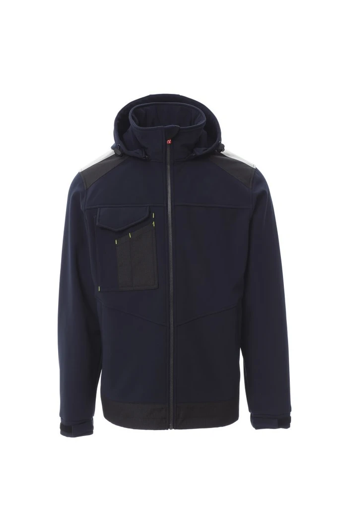 WP/MM 8000 MVP/GR 5000 Men's ergonomic jacket, fitted sleeve, full plastic SBS zip with "auto lock" metal pull, two zipped side pockets, one multipurpose breast pocket with concealed badge holder and LOCK SYSTEM concealed closing flap, 3M reflective stripes on the shoulders, elastic and Velcro fastening, removable and adjustable hood with elastic drawstring with stopper