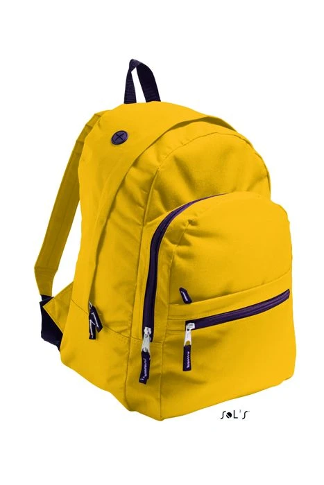 QUALITY: POLYESTER 600D - 100% polyester; Large middle compartment with double slider, 3 front zipped pockets, cord grommet, stitched inside botton -adjustable padded and reinforced straps, padded back, nylon carrying handle; Size: 33 x 43 x 17 cm