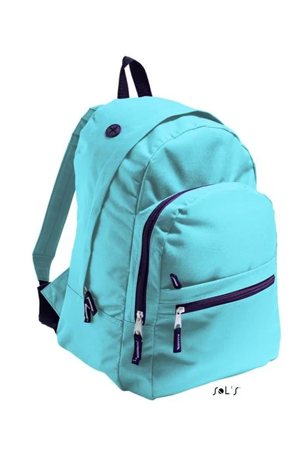 QUALITY: POLYESTER 600D - 100% polyester; Large middle compartment with double slider, 3 front zipped pockets, cord grommet, stitched inside botton -adjustable padded and reinforced straps, padded back, nylon carrying handle; Size: 33 x 43 x 17 cm