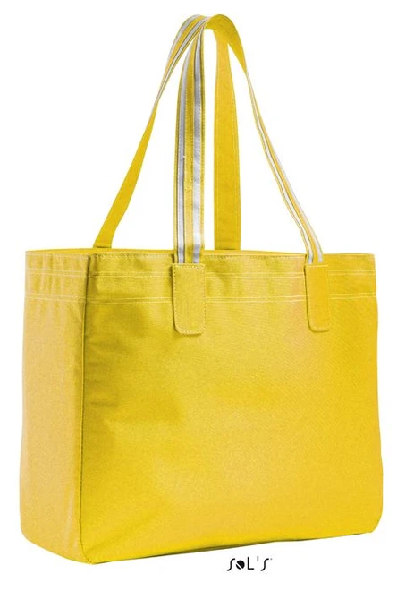 QUALITY: POLYESTER 600D - 100% polyester; Zipped inside pocket, contrasting stitching at the top of the bag, saddler style two-colored carrying handles; Size: 41 x 34 x 15 cm