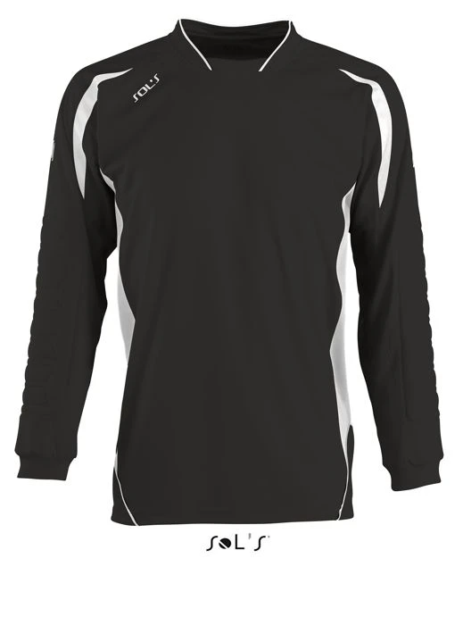QUALITY: 100% flat polyester; Raglan sleeves, Contrasted mesh inserts in the sides and sleeves, Embroidered contrasting logo and brand, Long sleeves with ribbed cuffs, Padded elbows to absorb impacts, Longer rounded back hem, suitable for sublimation