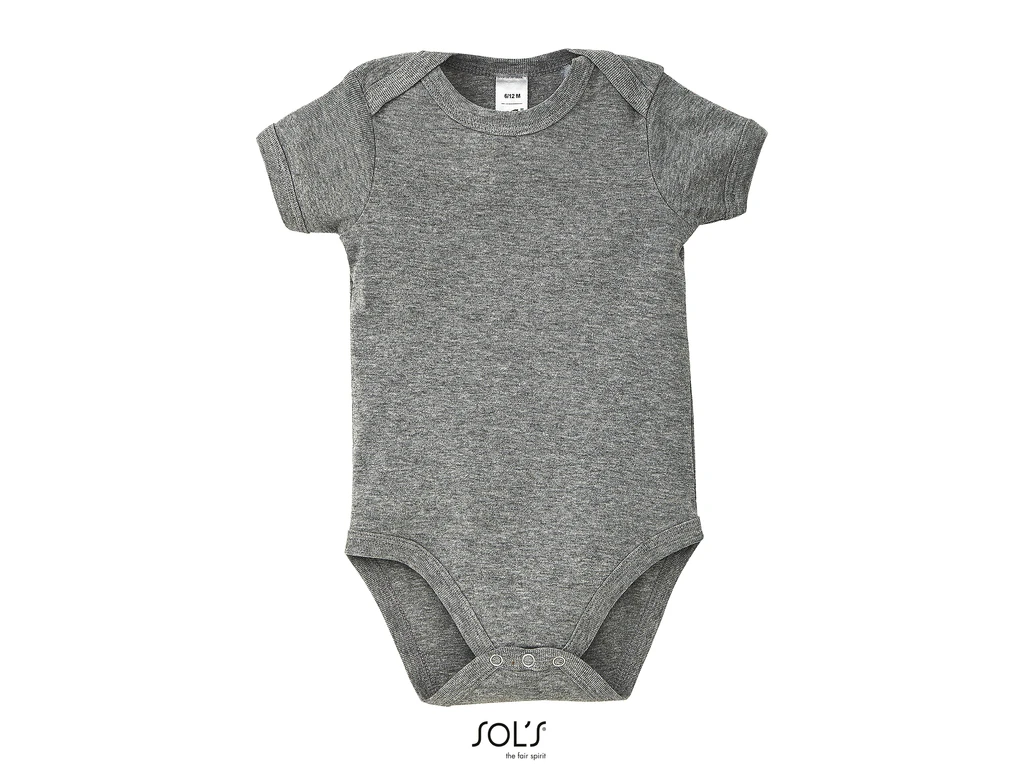 QUALITY: RIB 1x1 180, 100% combed ringspun cotton; CLASSIC, Collar, cuff and leg binding, Cap sleeves, Bottom popper fastening