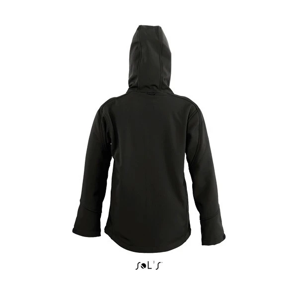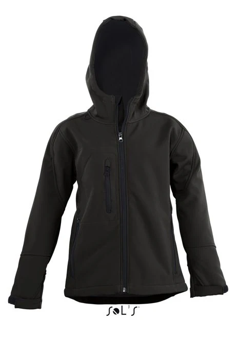 QUALITY: SOFTSHELL 340, 94% polyester, 6% elastane, 8000 mm coated waterproof and breathable membrane; SPORTY, 2 zipped side pockets and 1 zipped front pocket, Adjustable bottom of sleeves with VelcroHood without drawstring