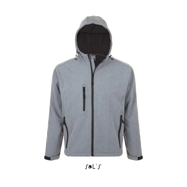 QUALITY: SOFTSHELL 340 - 94% polyester, 6% elastane, fleece lining: 100% polyester, 3 layers, 8000 mm waterproof and breathable membrane; SPORTY, 2 zipped side pockets and 1 zipped chest pocket, Adjustable waist drawstring, Adjustable cuffs with Velcro® tab, Hood with drawstring, SBS zips