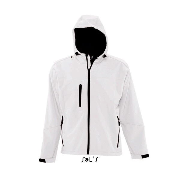 QUALITY: SOFTSHELL 340 - 94% polyester, 6% elastane, fleece lining: 100% polyester, 3 layers, 8000 mm waterproof and breathable membrane; SPORTY, 2 zipped side pockets and 1 zipped chest pocket, Adjustable waist drawstring, Adjustable cuffs with Velcro® tab, Hood with drawstring, SBS zips