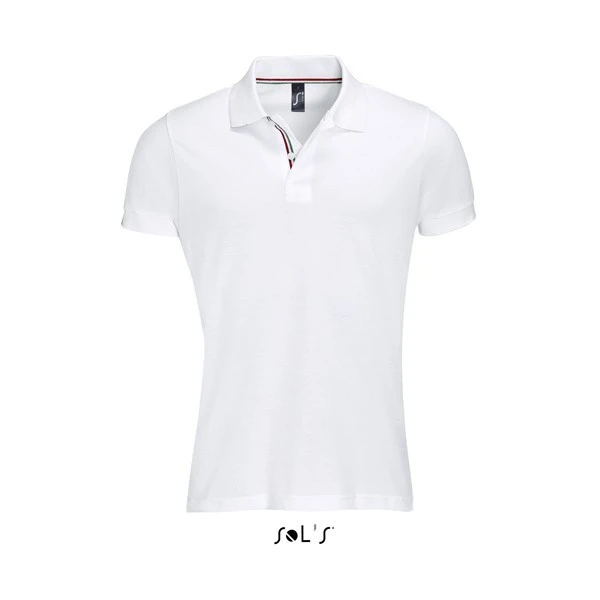 QUALITY: 200 PIQUÉ, 100% Ringspun cotton; Rib-knitted collar and cuffs, Reinforcing tape on neck, Short sleeves, Reinforced placket with 2-pearlised buttons, Contrasting stripes under collar, Contrasting cuff tag and tape in button placket, Cut and sewn, Fitted cut. Spare button on the inside seam; Certificate: STANDARD 100 by OEKO-TEX®