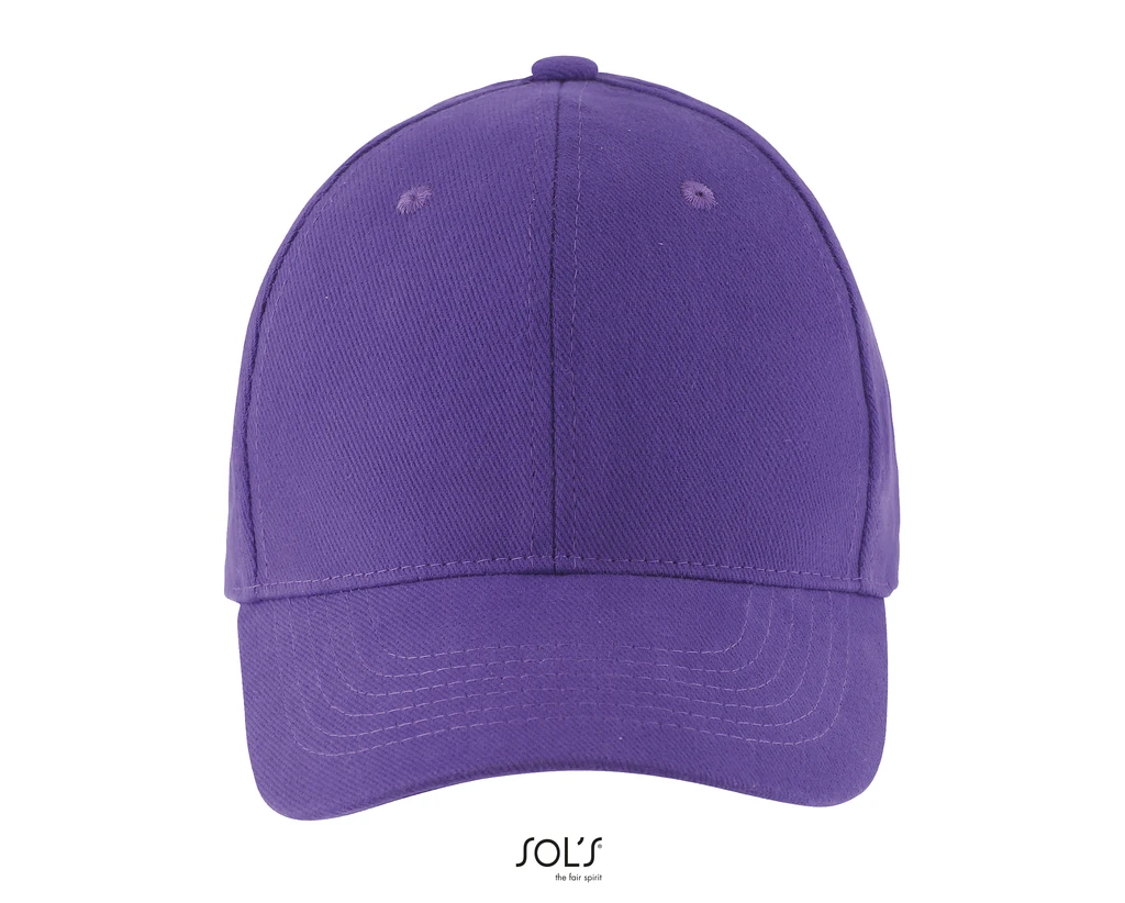 QUALITY: TWILL 260 - 100% thick brushed cotton; Preformed peak, 6 embroidered ventilation eyelets, adjustable back fastening with metal buckle