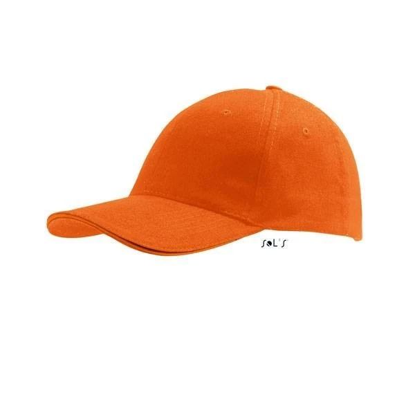 QUALITY: TWILL 260 - 100% thick brushed cotton; Preformed peak, 6 embroidered ventilation eyelets, adjustable back fastening with metal buckle
