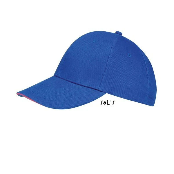 QUALITY: TWILL 260 - 100% thick brushed cotton; Preformed peak, 6 embroidered ventilation eyelets, adjustable back fastening with metal buckle